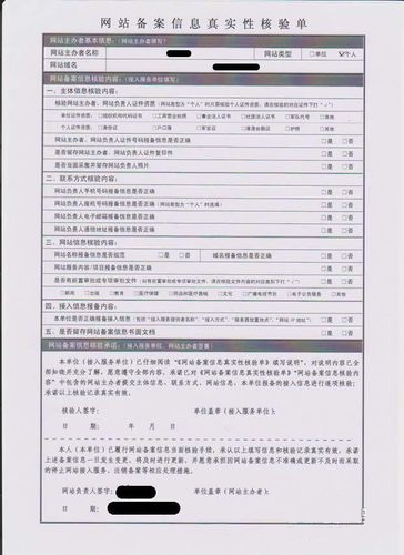 打印下來后,先把三張表格的“網站類型”部分全部勾好,如果是個人的就勾選上個人。“網站備案信息核驗內容:(接入服務單位填寫)”這部分千萬不要去填寫任何信息,因為這是接入商(空間服務商)填寫的,客戶不要填的。最后是“網站負責人簽字”,“日期”部分,這些用簽字筆簽好,注意這里的姓名一定要和寄過來的身份證上的名稱一致。三份核驗單都一模一樣的填好。